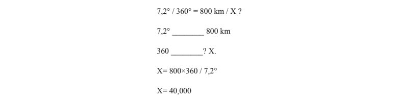 By using a very simple equation, he was able to calculate the circumference of the earth to find 40.000 :