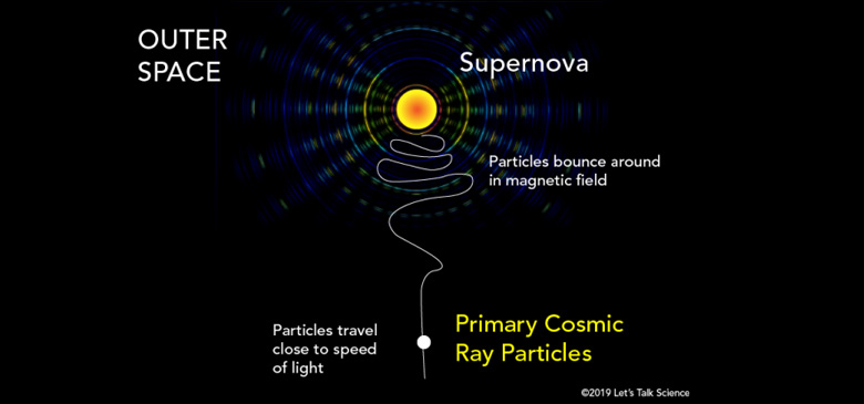 Çeşitli kaynaklardan gelen kozmik ışınlar (genellikle protonlar), uzaya yayılırlar ve yüksek hızlarda Dünya’ya ulaşırlar.