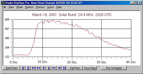 Periyotlarının uzunluğuna karşın patlamanın yükseliş periyodu kısadır bu sebeple grafik köpek balığının sırt yüzgecini andıracak bir şekle bürünür. Bir Güneş patlamasında, birkaç saniye boyunca zayıf galaktik arka plan gürültüsü ve ardından bir Solar radyo patlama gürültüsü kaydedilir.