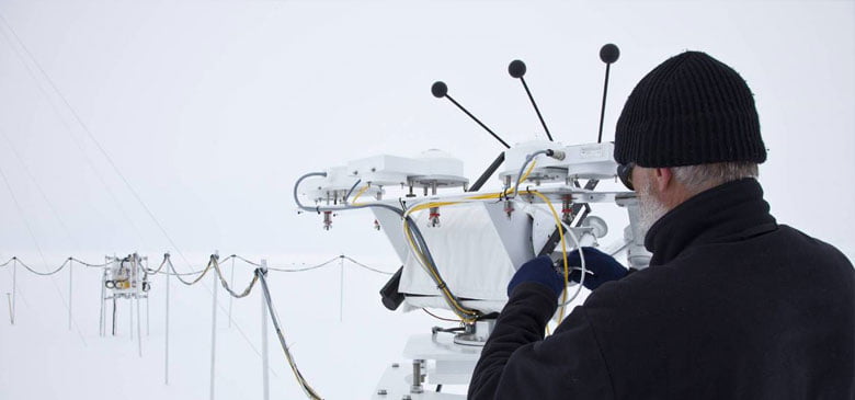 Energy for the station is provided by diesel generators and a wind turbine. Most remote observatories use a combination of wind and solar power.